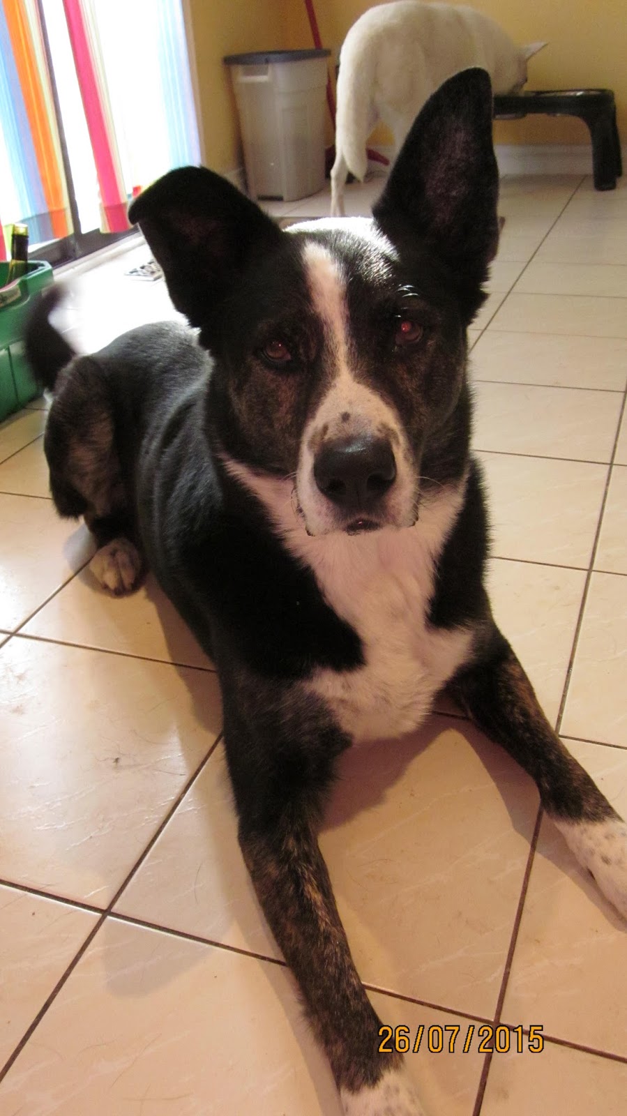 Yesterday Diego heard a dog bark behind a fence, and looked at me! Today he heard the neighbour's gate - a huge trigger that usually sends him crashing down the space between houses, barking and jumping like a maniac. He took two steps towards the sound, then faced me and came running over for his reward. A+!!!