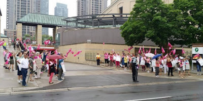 Fred, Eddie Pereira from Peel District CUPE Council, and I walked around City Hall gathering the groups of members who were at the exits. Then Eddie showed us how it's done! We are allowed to detain people and cars going in and out of City Hall. Many of our members were amazed... in a good way!