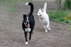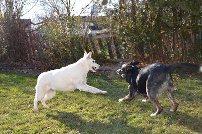 In her younger days, picking on small dogs at the dog park. If they would turn around and give her what-for, she was happy to let them chase her. If they cowered, she bullied them until we could finally distract her.