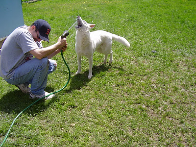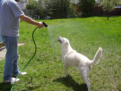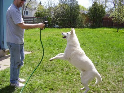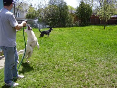 Talabo. Spinning wildly in circles, a white blur. Patroling the perimeter of her yard to keep us safe from the evil squirrels. Barking and spinning in the car, nonstop. Barking until someone would finally spray her with a hose, hopefully until she was soaked. Staring at the hose, waiting for someone to spray her, or perhaps trying to will the hose to spray her.