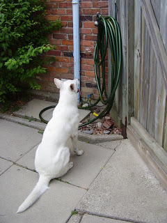 | Waiting for a neighbour to spray her. |