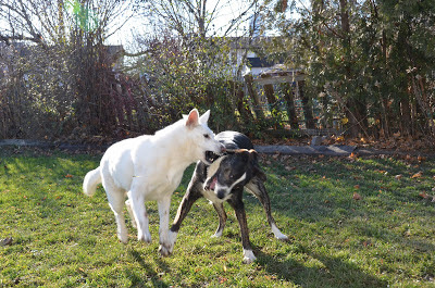 Mostly nice to other dogs, always sweet to humans, especially children. When we first brought Tala home, Cody hated her, but Tala didn't care, she kept trying to get Cody to play with her, until Cody finally gave in. Tala, best friend to Diego from the moment they met.