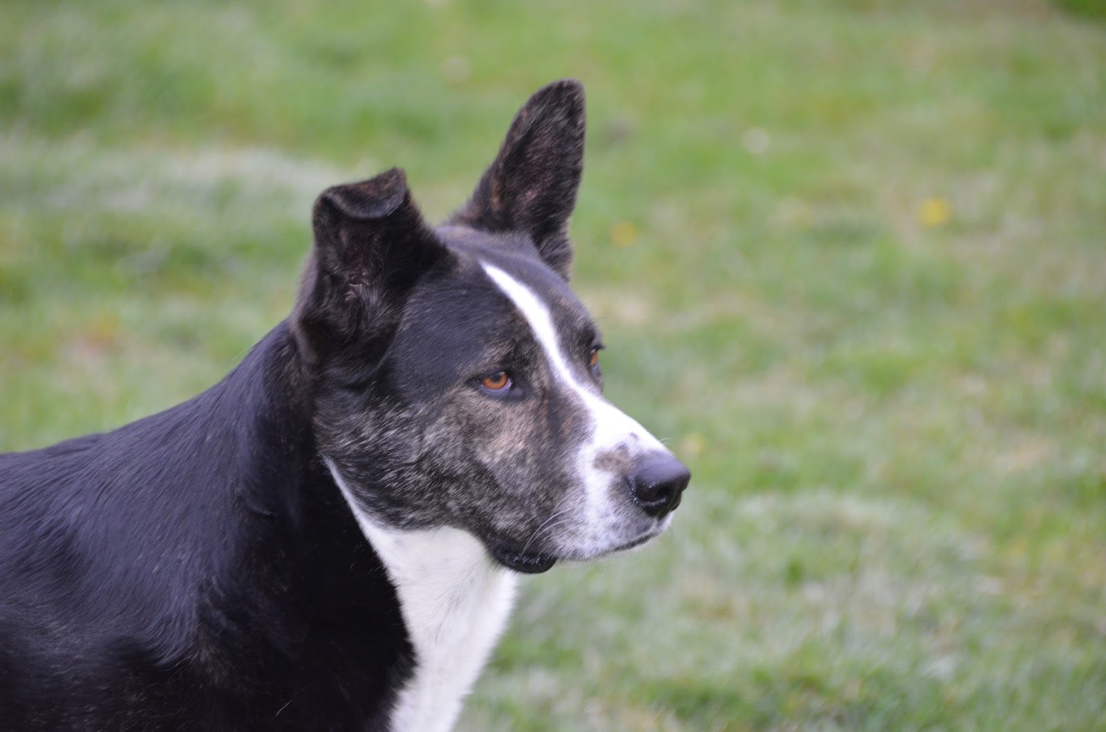 I just don't get it. Diego looks nothing like a German Shorthaired Pointer. Other than his prick ears, he looks and behaves nothing like a German Shepherd. He does somewhat resemble a Smooth-Coated Collie, but that's a very small percentage. No Border Collie, although he exhibits some classic Border Collie behaviour? No Staffordshire Terrier or American Pit Bull Terrier, even though we see the bully boy in his face? No Boxer, no Mastiff?