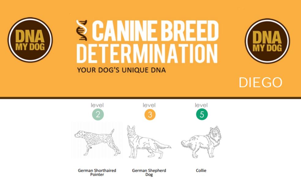 You may recall, we decided to have Diego's DNA examined to see what breed mix he is. Here's what the folks at DNA My Dog have determined.