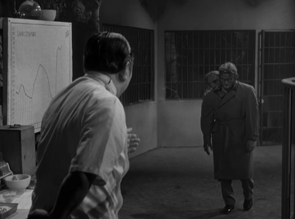 In The Manster, an American journalist goes to Japan to interview a scientist rumoured to be experimenting with youth serums. In his secret mountain laboratory, the scientist keeps various creatures locked in cages. (We later learn that one of the creatures used to be his wife.) Scientist secretly injects journalist, which causes a second head to grow out of his shoulder. The second head is evil and causes the transformed journalist to murder people.