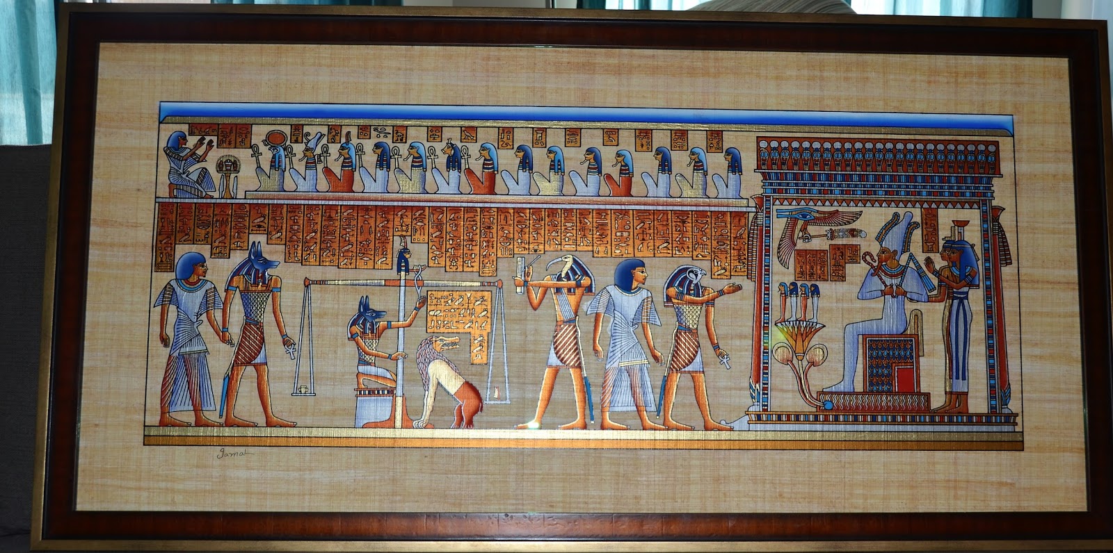 This, below, is the smaller painting that the salesman added to the pot after the price would budge no further. It is possibly painted on banana leaf, a cheaper and less durable papyrus substitute.