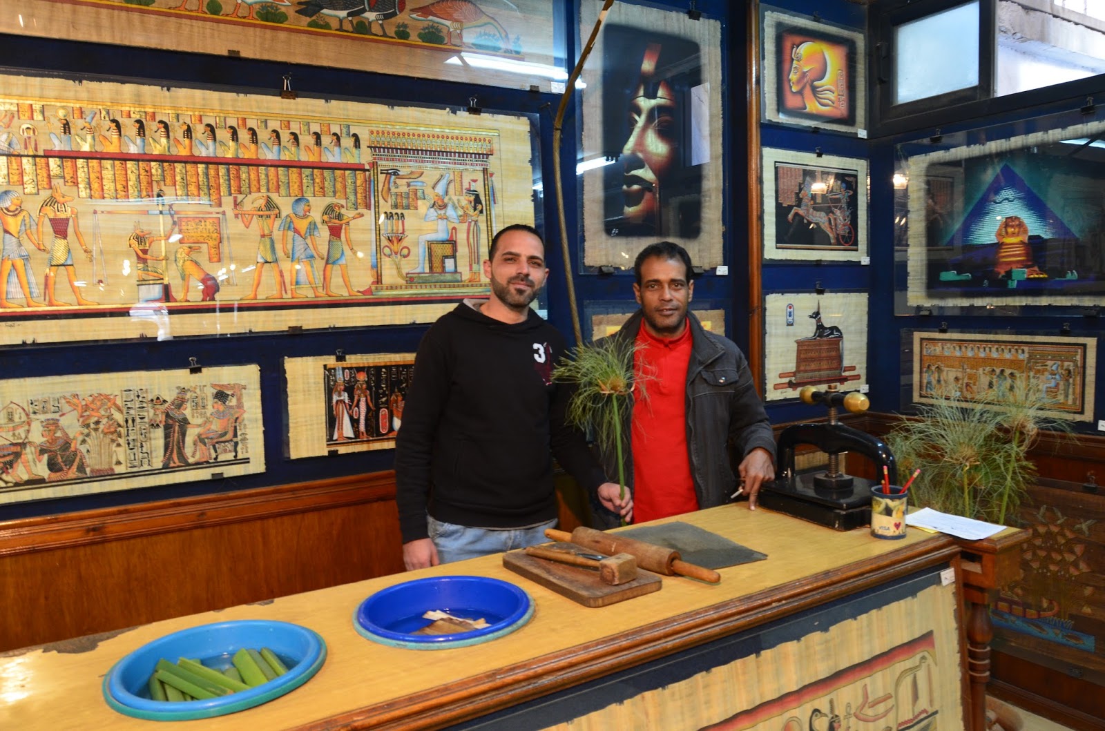 | The celery-looking stuff is fresh papyrus. We watched Papyrus Guy make a small sheet. |