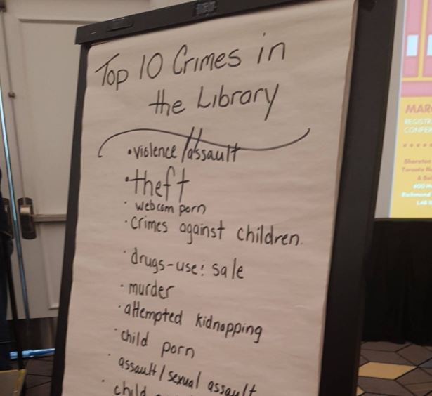 This year's group exercise at the conference was listing the "Top 10 Crimes" we've witnessed or heard about in our libraries.