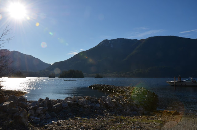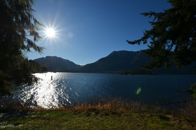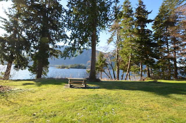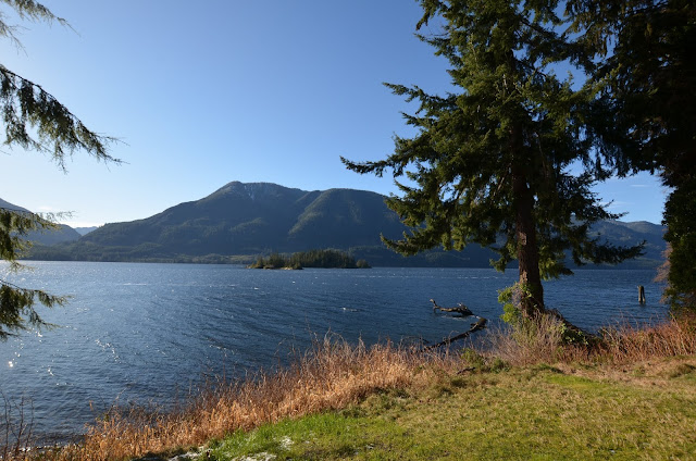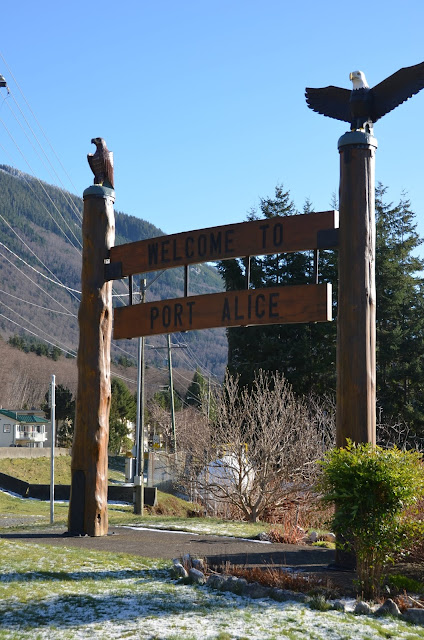 After the hike we drove to Port Alice, where one of my libraries is located. I had visited the library the previous week and I couldn't wait for Allan to see the location. The town is located on an inland lake (actually an inlet) surrounded by mountains, and it is breathtaking. I've never been to Scandinavia, but we saw fjords in Gros Morne Park in Newfoundland, and Port Alice has the same feel. Our photos don't do it justice.