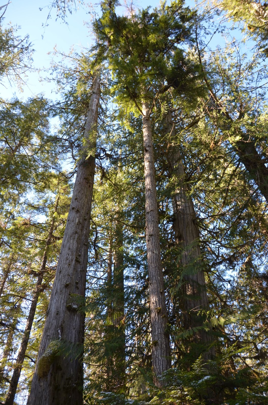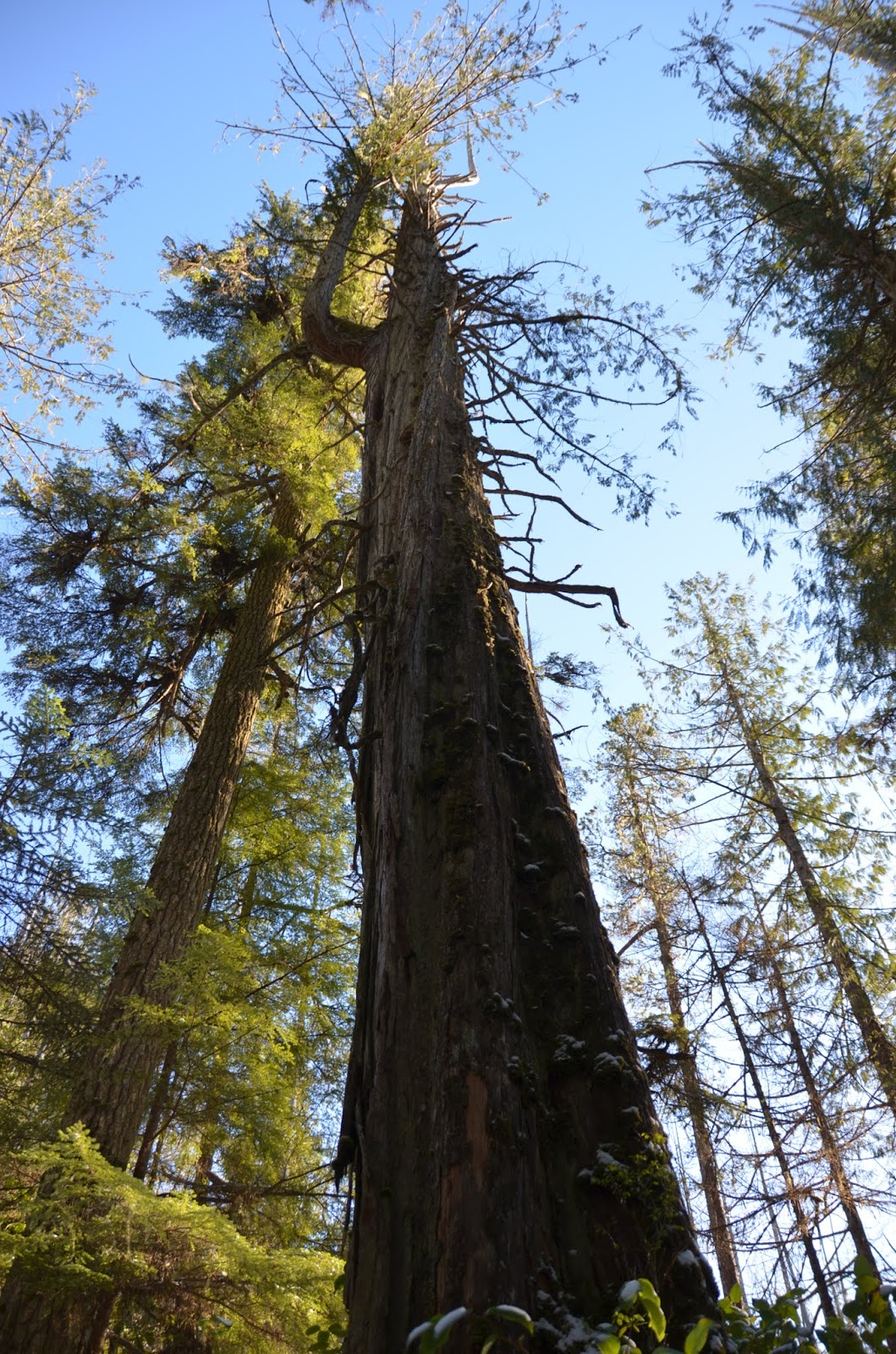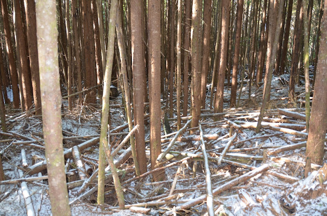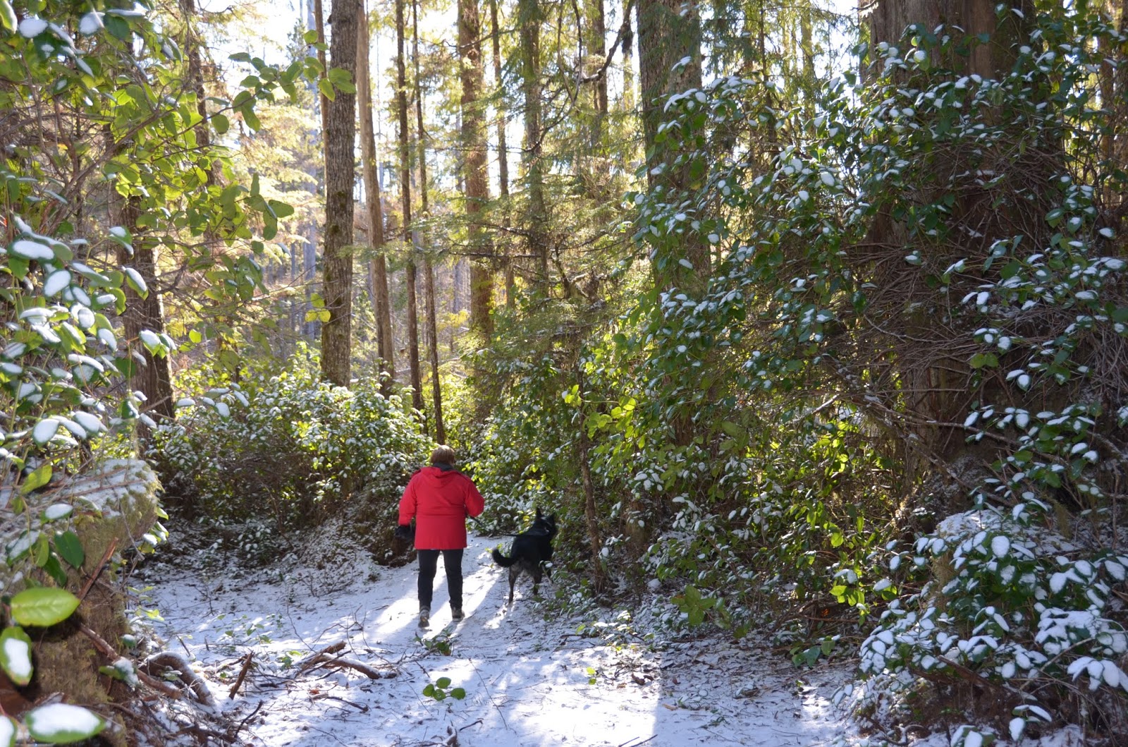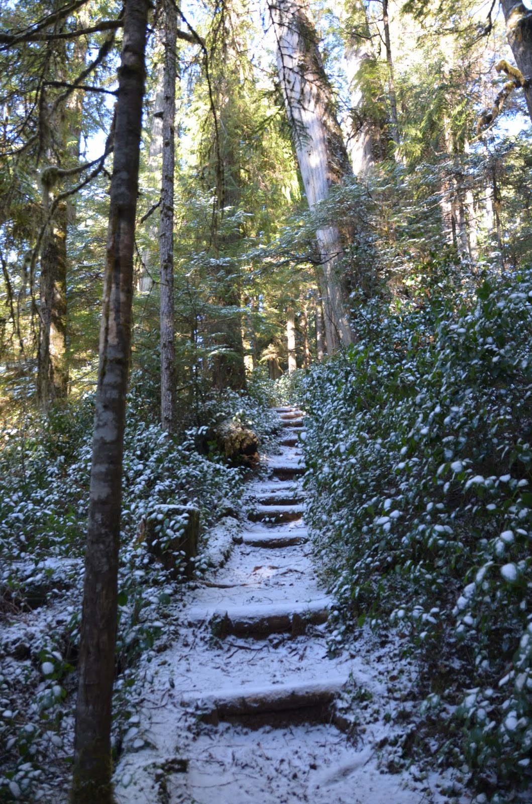 Last weekend, we hiked in the Beaver Lake Recreation Trail -- the first time I've ever hiked in winter. There was a dusting of snow and it was cold enough to wear a parka. The trail is full of interpretative signs about the forest, pointing out old growth, second growth, "managed", and other stages. The information is sponsored by the lumber company, so you have to translate the propaganda a bit, but it was still interesting to think about the woods this way. Plus because it was cold and dry, there were no (visible) mushrooms.