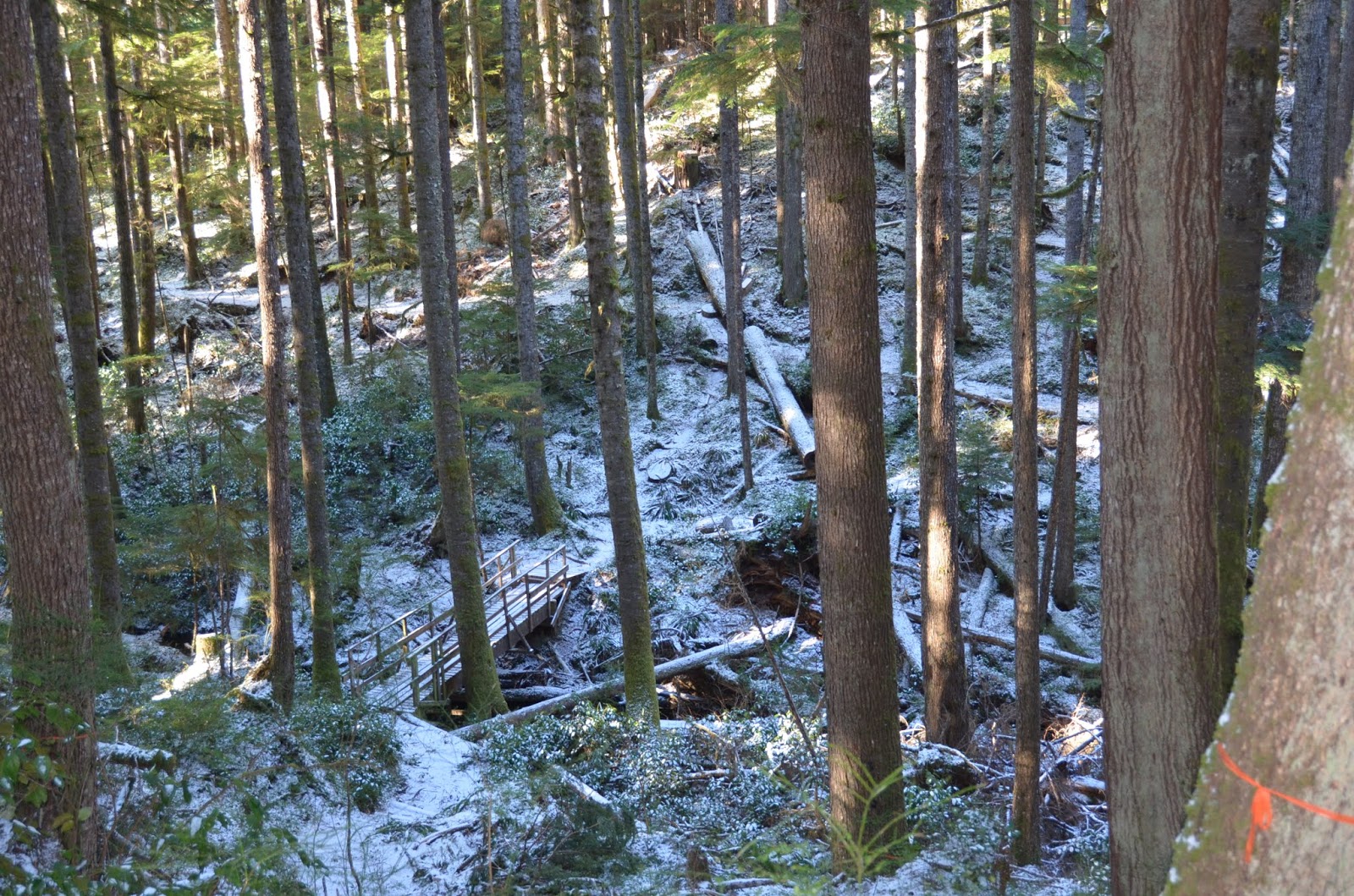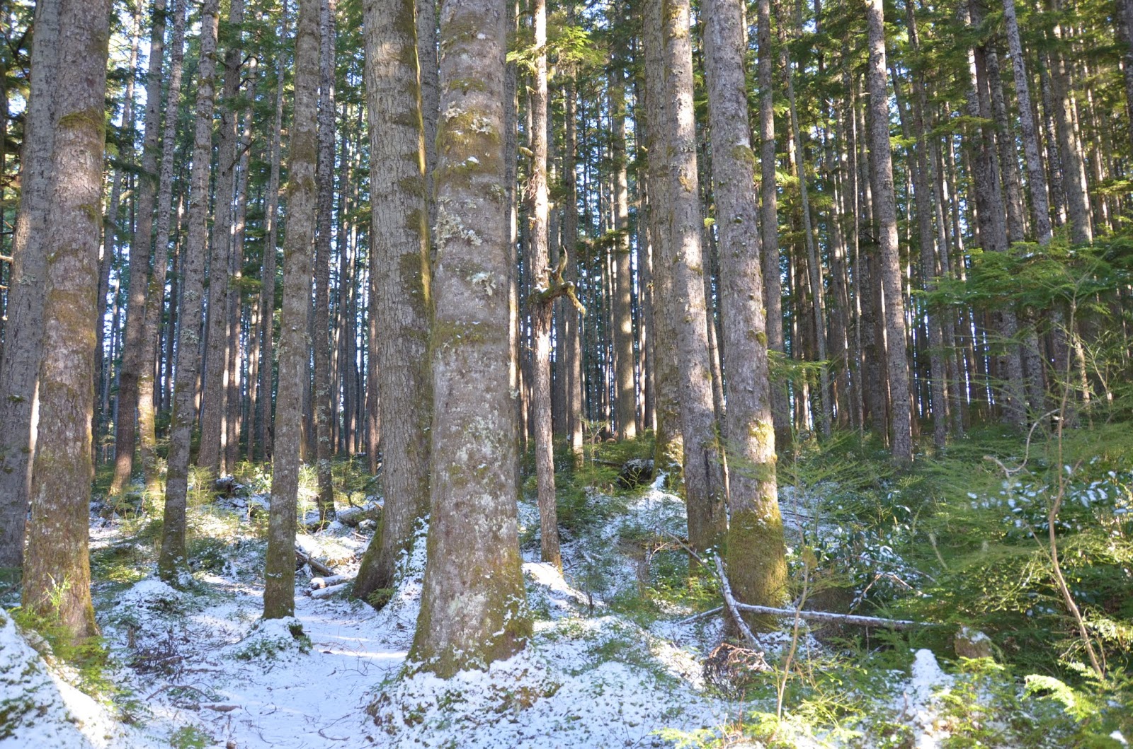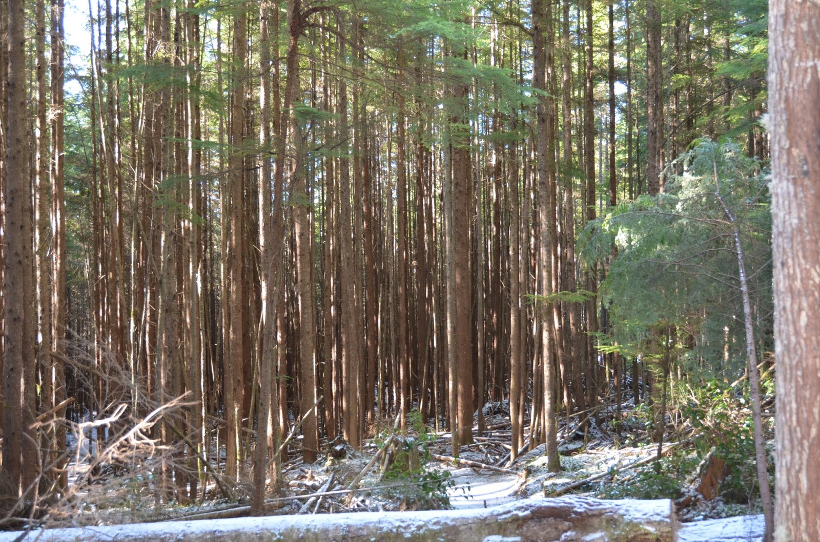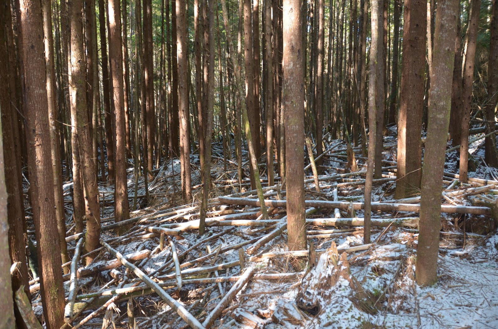 | This is off the long, twisty road to Port Alice. Note the bare spot from "harvesting". The area is dotted with those. |