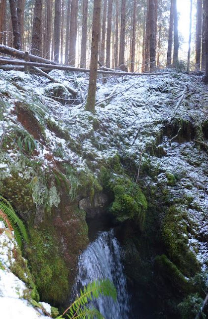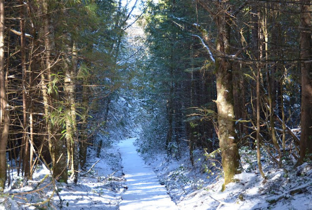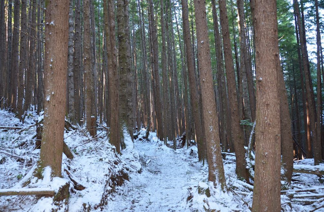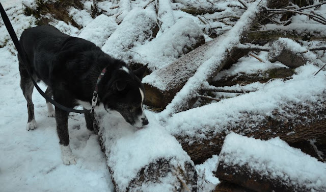 | Diego likes the woods, too. Especially with yummy snow on top. |
