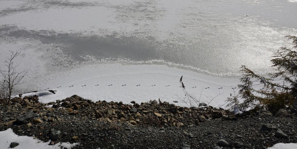 | Tracks on a frozen lake. |