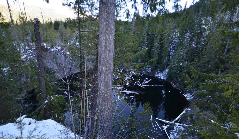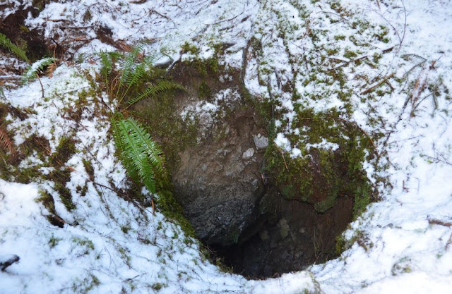One noted karst formation is called Devil's Bath. It wasn't easy to photograph. It's a large cenote, visible from the logging road.