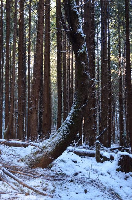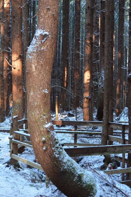 We saw many trees growing in this elbow shape. We don't know why trees do this!