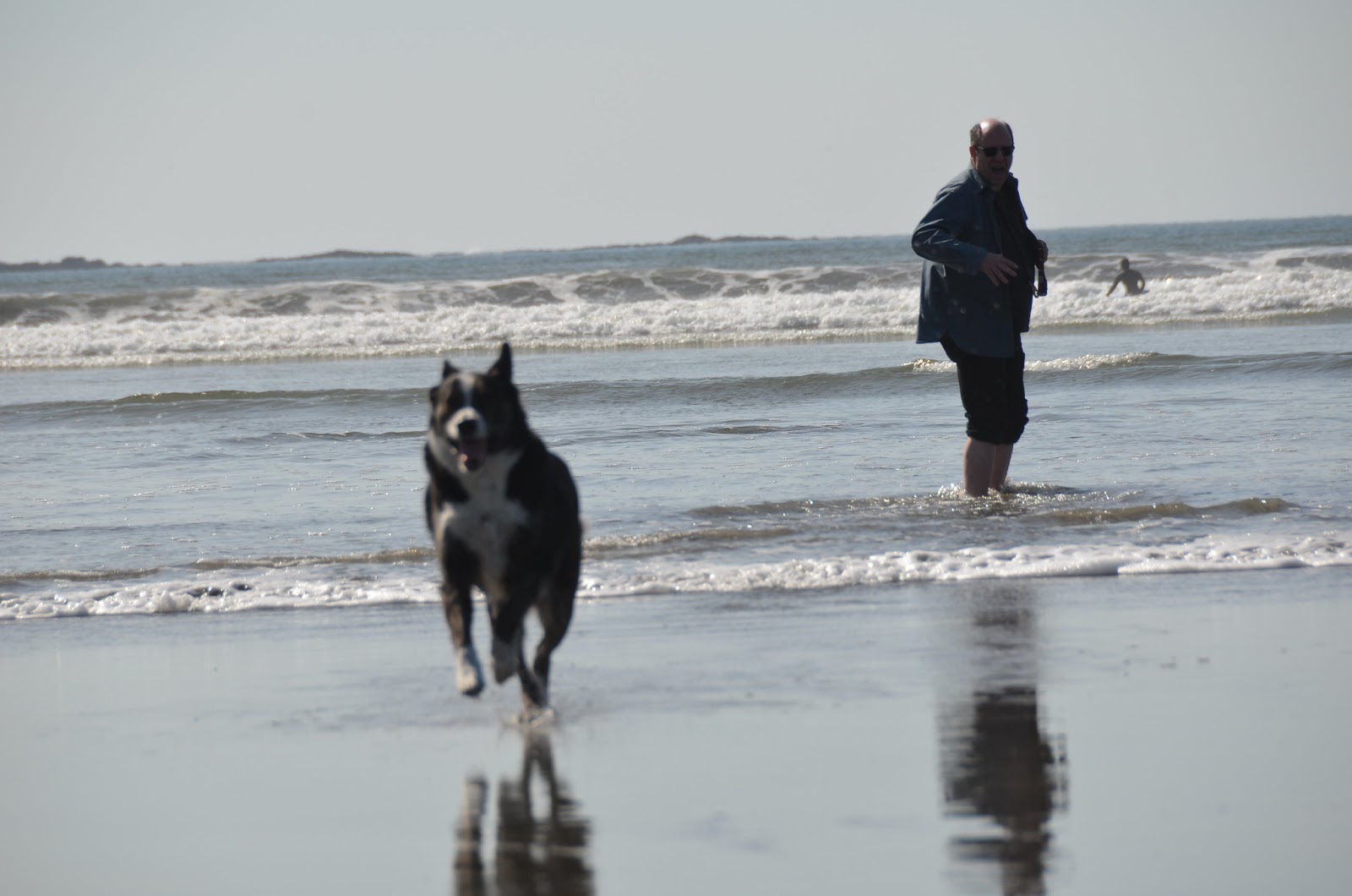 He especially loved the beach. We couldn't say the word beach around him, he'd go nuts thinking he was going. Then we couldn't say b-e-a. We would say to each other, "Should we go to the place of sand and water?" At the word speech or reach, his ears would pop up and he'd stare, hoping.