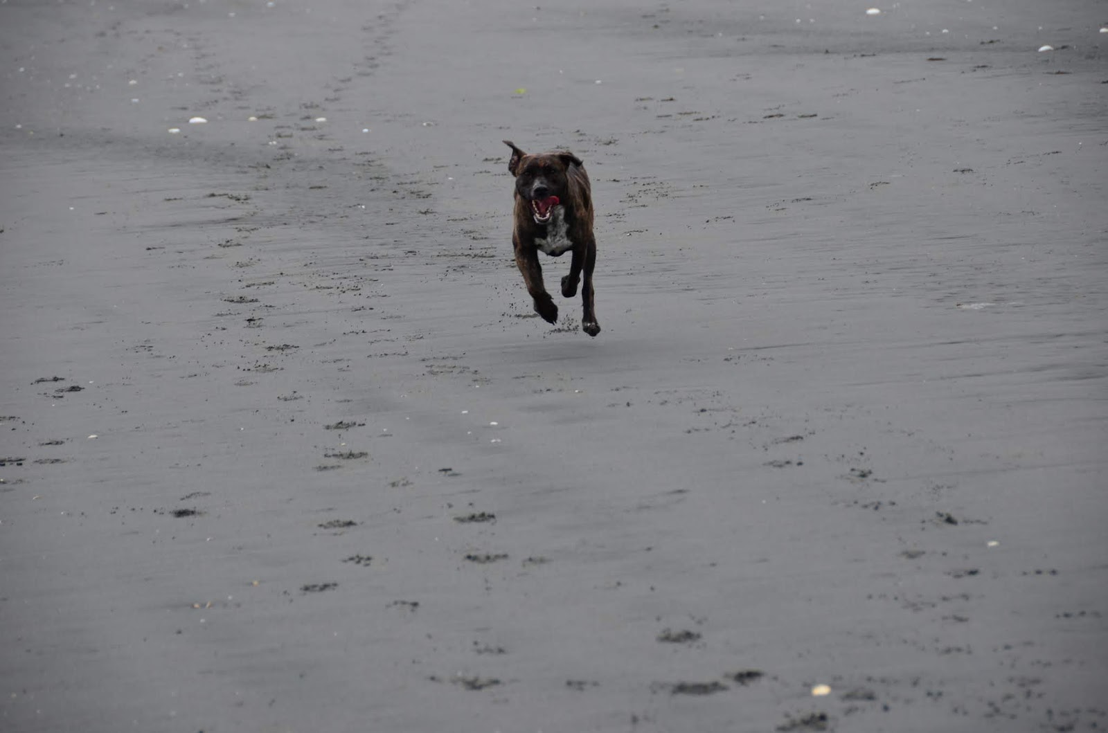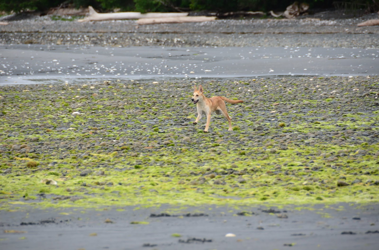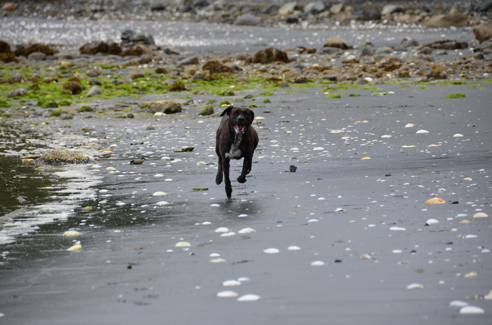 It was a little scary, and I wondered if we would ever see Cookie again. Both Cookie and Kai ran and ran and ran, mostly circling back to us when we called them. Then at one point Kai circled back and Cookie continued trotting away. Allan went off to follow her, so far down the beach I really couldn't see her any more.