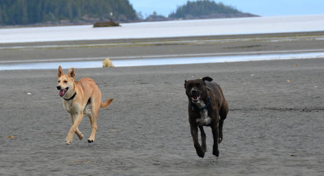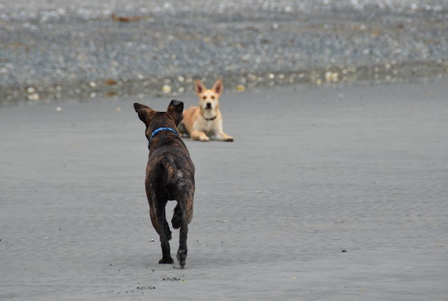 This time Cookie never went off on her own. She and Kai ran and ran and ran -- sometimes quite far away, chasing birds -- but we would keep calling their names, and eventually they both circled back around to us (and treats).