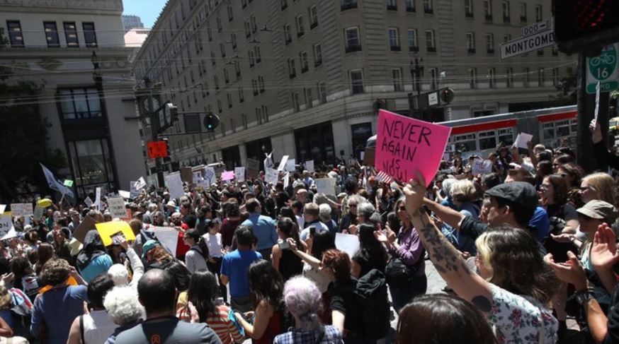 | This photo circulated with a story on a protest in Boston, but was taken at a protest in San Francisco. |