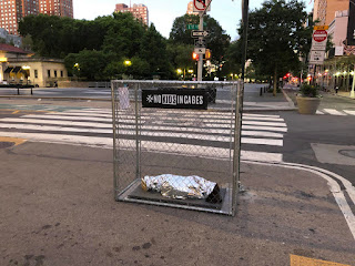 In New York City, RAICES commissioned artists for some hard-hitting guerrilla art. Cops removed the ten installations, but images circulated widely. At the link above, Forbes calls the images "disturbing".