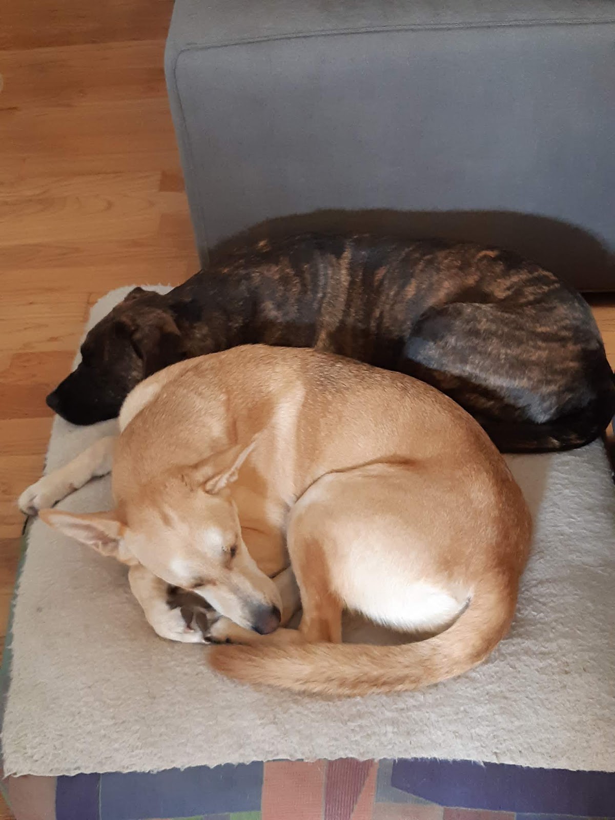 Cookie let herself out of the house, Kai followed, and they went for a stroll. My poor mother was terrified that they'd be hit by a car. Kai came back as soon as Allan called her. Cookie was busy playing in the neighbour's yard, and Allan was able to grab her. (I was at work.)