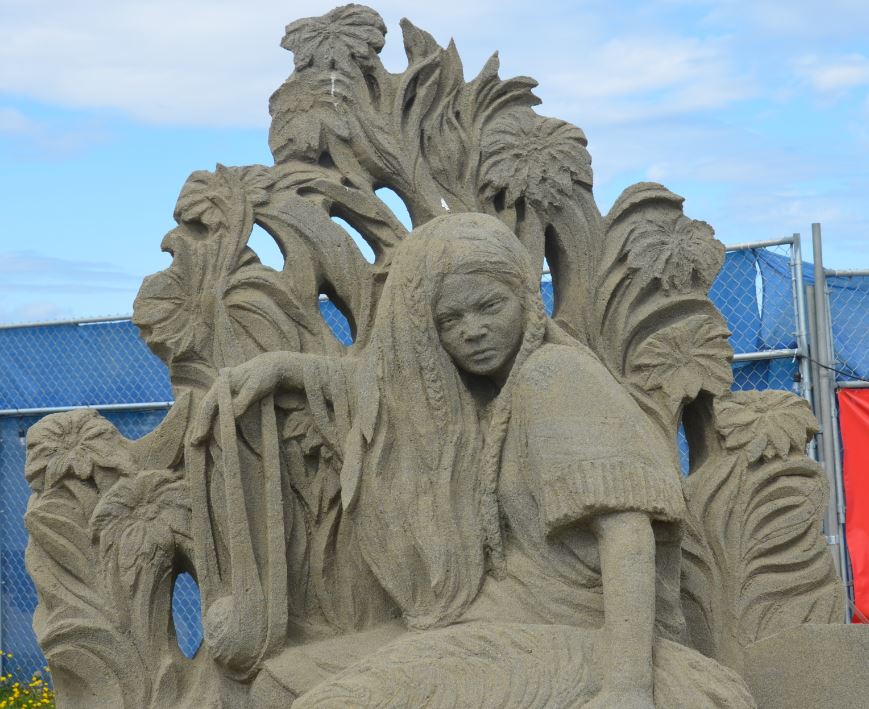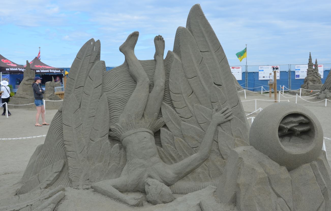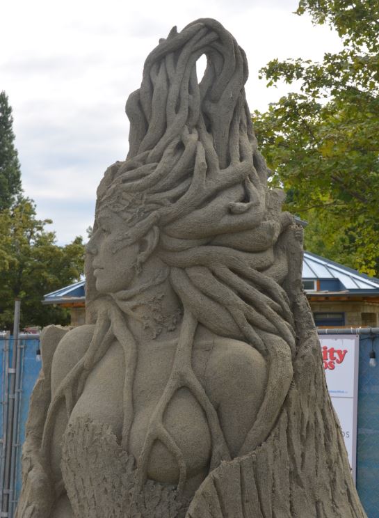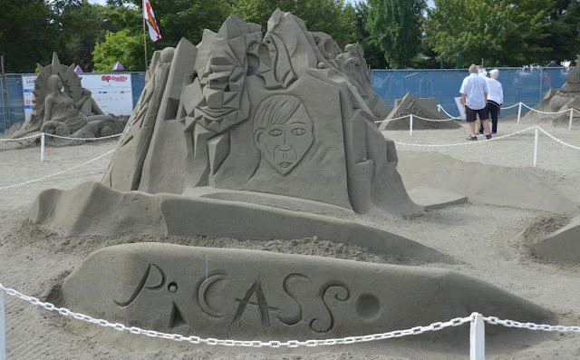 On Sunday we took another beautiful drive, down to Parksville for the annual Sand Sculpting Competition. This is held in a section of a beautiful community park, with immaculate gardens and landscaping, an absolutely amazing playground, tennis courts, volleyball nets, and all kinds of other fun, adjacent to a beautiful sandy beach. Well done, Parksville.