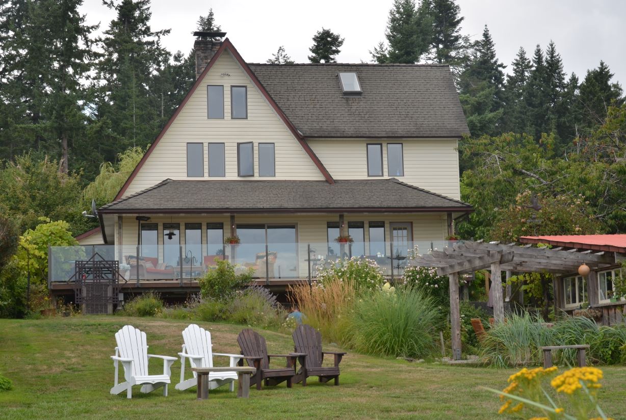 First there was the drive down-island, which included our obligatory stop at Ideal Cafe. We contrive to eat there whenever we go to Campbell River or beyond -- which means anytime we go anywhere out of the North Island. After another great breakfast, we found the Airbnb, a two-bedroom cottage with a patio, surrounded by pear trees and blackberry bushes, and steps away from the water.