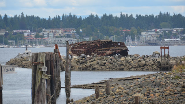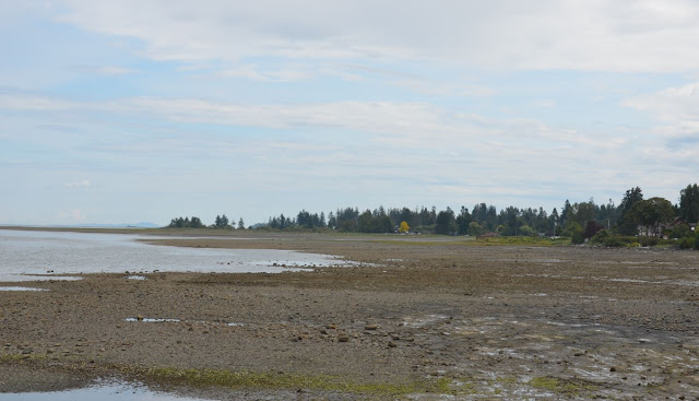 We started Monday with a few errands in Comox. Comox has a lovely, cutesy main street and beautiful views of the estuary. When it's clear enough, mountains are visible in two directions. (The running theme of my mom's visit is "There are snow-capped mountains in that direction... but you can't see them." Those bright-blue skies with sparkling mountains in the distance don't seem to happen in summer.)